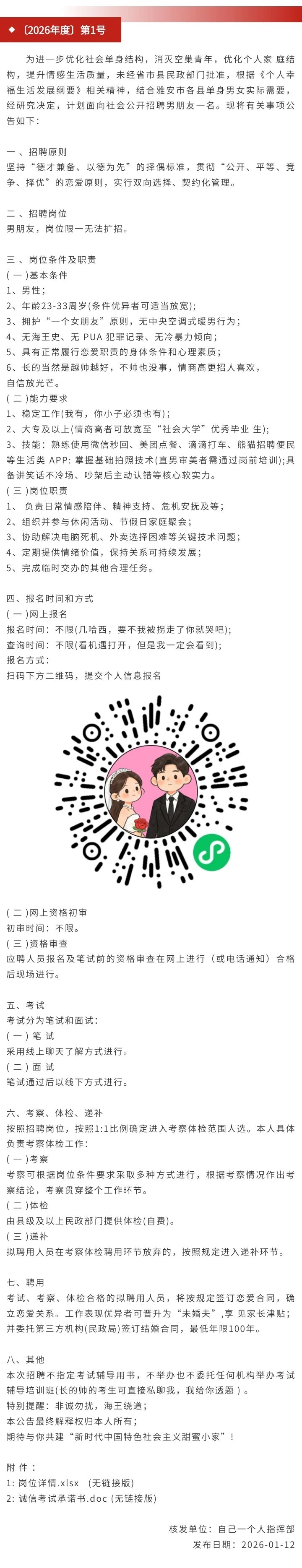 关于面向雅安市公开招聘男朋友的公告